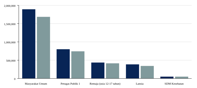 For the vulnerable general public, the target was 2.18 million people. The first dose was administered to 1.89 million people (87.06% of the target). The second dose reached 77.36% of the target, with 1.68 million doses administered.