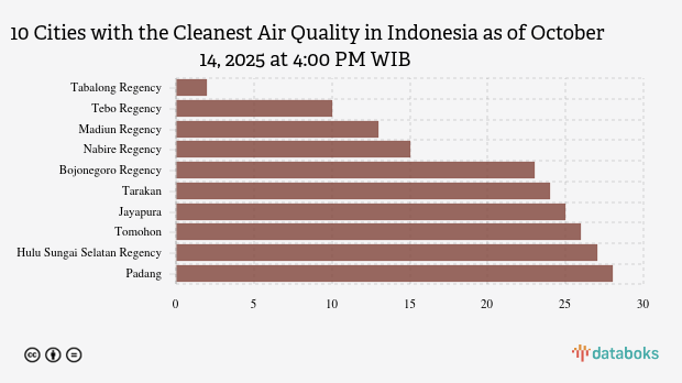 Here is the complete list of the 10 cities with the cleanest air quality in Indonesia according to KLHK on Tuesday, October 14, 2025, at 4:00 PM WIB.