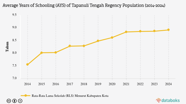 The average years of schooling (AYS) for residents aged 25 years and above in Tapanuli Tengah, North Sumatra, reached 8.92 years in 2024.