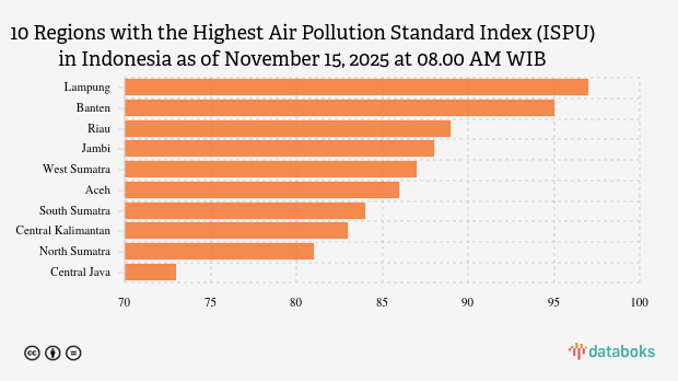 Lampung's air quality is the worst in Indonesia this morning. Based on the Air Pollution Standard Index (ISPU) page of the Ministry of Environment and Forestry (KLHK) on Saturday (15/11/2025) at 08.00 AM WIB, it was revealed that the air quality index in Lampung was 97.