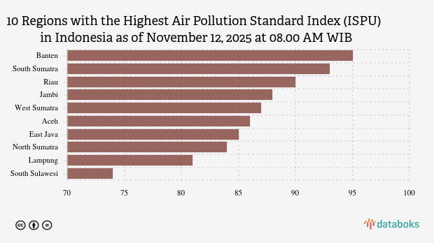 Here is a list of the 10 provinces with the worst air quality index in Indonesia on Wednesday, November 12, 2025, at 08.00 AM WIB.