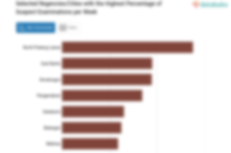 Following are Simalungun, with a population of 877,710, and a weekly suspect testing percentage of 57.82 percent; Pangandaran, with a population of 407,350, and a weekly suspect testing percentage of 53.82 percent; and Sukabumi, with a weekly suspect testing percentage of 46.06 percent.