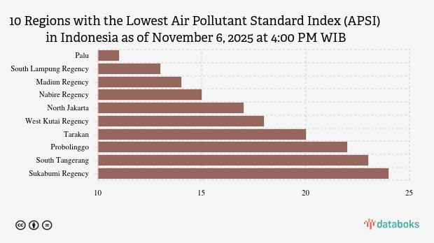 Here is a list of the 10 cities with the cleanest air quality in Indonesia according to KLHK on Thursday, November 6, 2025 at 4:00 PM WIB.