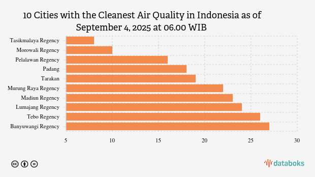 Below is a list of the 10 cities with the cleanest air quality in Indonesia according to KLHK on Thursday, September 4, 2025, at 06.00 WIB.