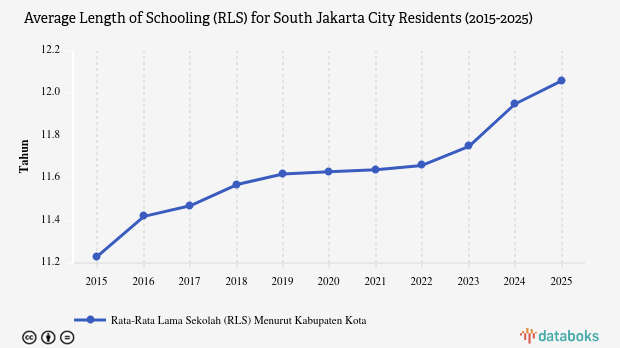 The average length of schooling (RLS) for residents aged 25 years and over in South Jakarta City, DKI Jakarta, reached 12.06 years in 2025.