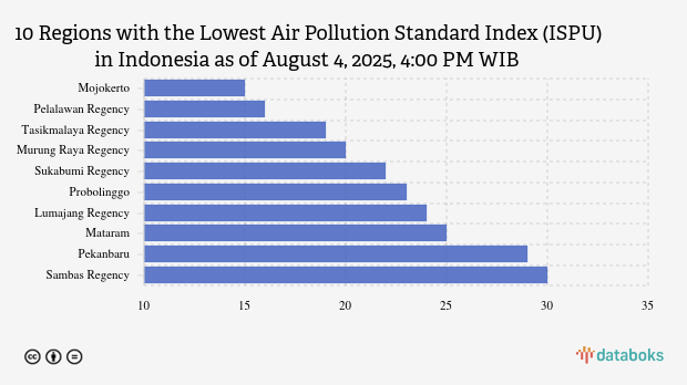 Below is the list of 10 cities with the cleanest air quality in Indonesia according to KLHK on Monday, August 4, 2025, at 4:00 PM WIB.