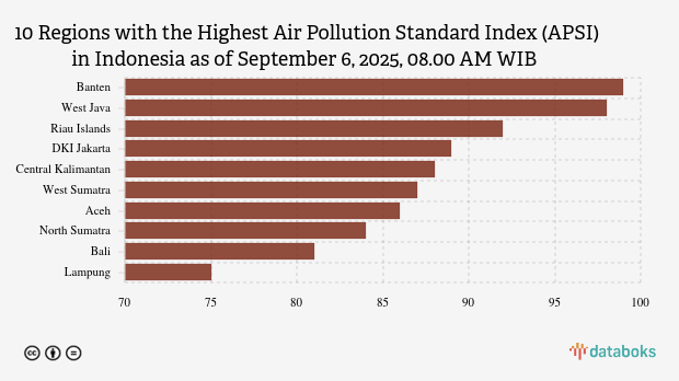 Air quality in Banten this morning is the worst in Indonesia. Based on the Air Pollution Standard Index (APSI) page of the Ministry of Environment and Forestry (KLHK) on Saturday (6/9/2025) at 08.00 AM WIB, it was revealed that the air quality index in Banten was 99.
