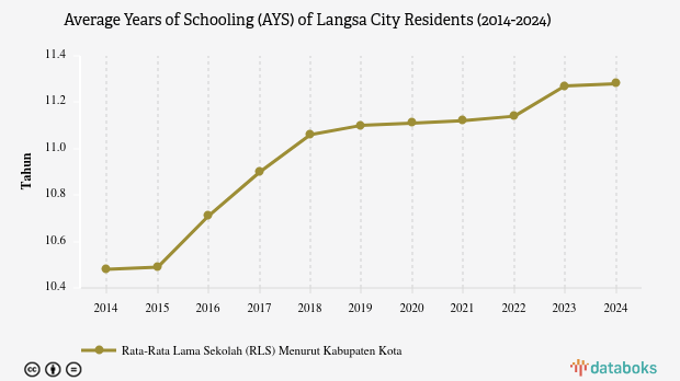 The AYS of Langsa City residents increased by 0.01 years (0.09%) compared to the previous year, which was 11.27 years. Meanwhile, over the last five years, the AYS increased by 0.18 years (1.62%).