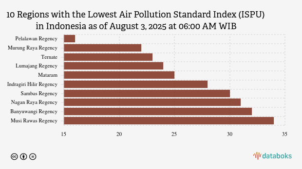 Here is a list of the 10 cities with the cleanest air quality in Indonesia according to KLHK on Sunday, August 3, 2025 at 06:00 AM WIB.