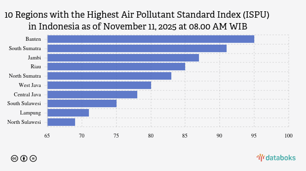 Air quality in Banten this morning is the worst in Indonesia. Based on the Air Pollutant Standard Index (ISPU) page of the Ministry of Environment and Forestry (KLHK) on Tuesday (11/11/2025) at 08.00 AM WIB, it was revealed that the air quality index in Banten was 95.