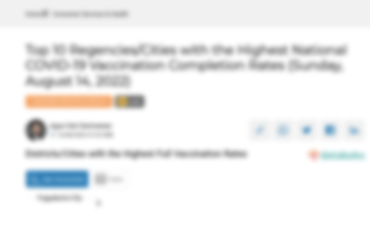 The top five regencies/cities with complete vaccination rates exceeding 128.67 percent are Yogyakarta City (196.02 percent), Central Jakarta City (184.31 percent), Denpasar City (141.07 percent), South Jakarta City (138.88 percent), and Magelang City (128.67 percent).