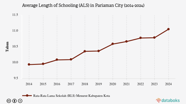 The average length of schooling (ALS) for residents aged 25 years and over in Pariaman City, West Sumatra, reached 11.06 years in 2024.