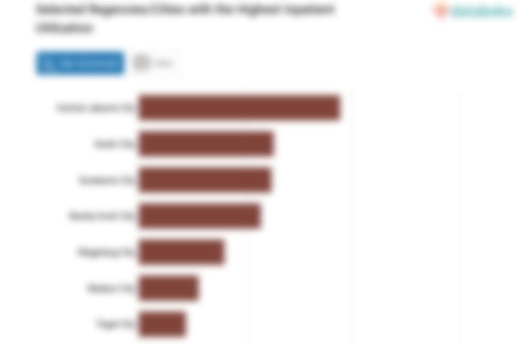 The five regencies/cities with the highest inpatient use, exceeding 9.02 patients per 100,000 population/week, are Central Jakarta, Kediri City, Surakarta City, Banda Aceh City, and Magelang City, with respective values of 14.45, 11.27, 11.16, 10.71, and 9.02 patients per 100,000 population/week.