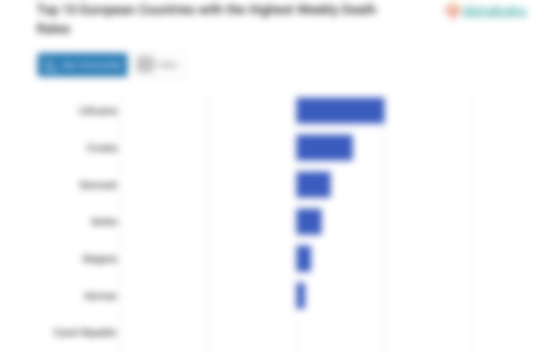 Following Lithuania is Croatia (Hrvatska) in second place. Compared to the previous week, deaths in this country grew by 32 percent. The number of deaths in this country is reported as 33. Daily death statistics show a 32% increase compared to the previous day, which was 25 deaths.