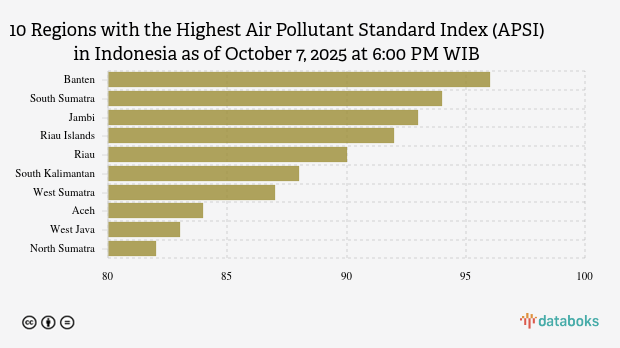 Air quality in Banten tonight is the worst in Indonesia. Based on the Air Pollutant Standard Index (APSI) page of the Ministry of Environment and Forestry (KLHK) on Tuesday (7/10/2025) at 6:00 PM WIB, it was revealed that the air quality index in Banten was 96.