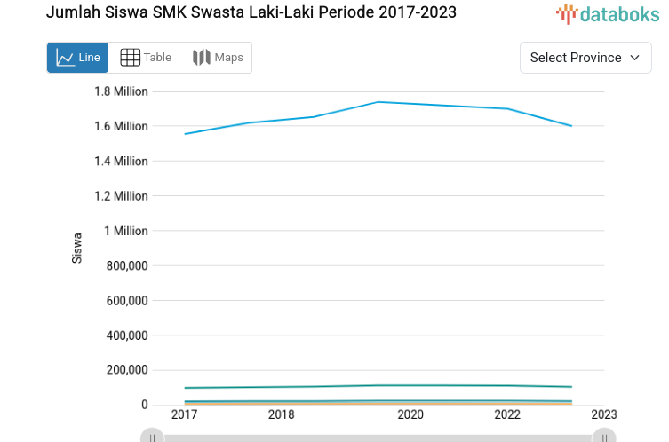 Jumlah Siswa SMK Swasta Laki-Laki Periode 2017-2023