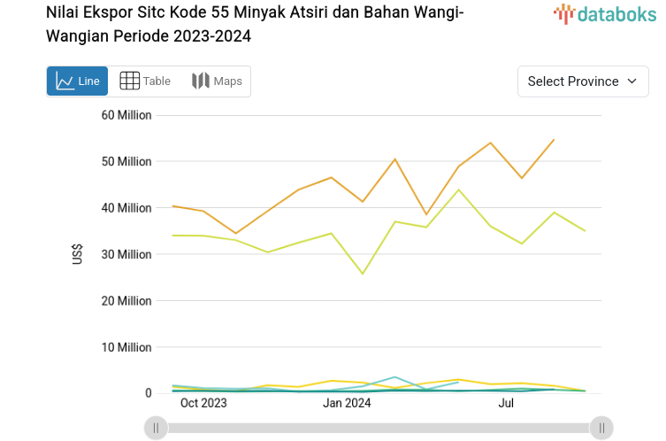 Statistik Nilai Ekspor Sitc Kode 55 Minyak Atsiri dan Bahan Wangi-Wangian Periode 2023-2024