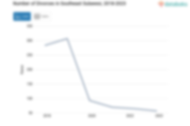 The number of divorces in Southeast Sulawesi in 2023 was recorded at 57 cases. This figure has shown a decrease for zero consecutive years. The growth over the past five years in this region shows a decrease of -28.59%.
