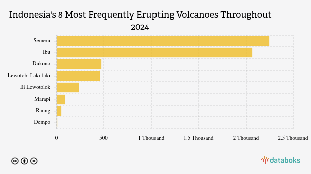 Throughout 2025, MAGMA Indonesia has recorded 5,608 volcanic eruptions across Indonesia. Mount Semeru in East Java has erupted the most (2,247 times), while Mount Ili Lewotolok has erupted 231 times.