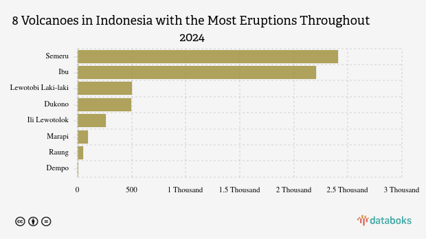 Throughout 2025, MAGMA Indonesia has recorded 6,011 volcanic eruptions across Indonesia. Mount Semeru in East Java had the most eruptions (2,410 times), while Mount Marapi erupted 95 times.