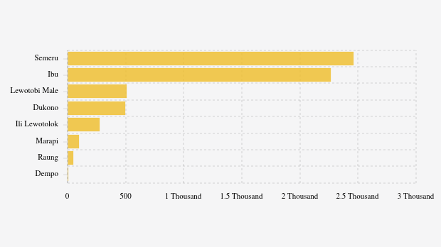 Throughout 2025, MAGMA Indonesia has recorded 6,161 volcanic eruptions across Indonesia. Mount Semeru in East Java had the most eruptions (2,462 times), while Mount Lewotobi Male erupted 508 times.