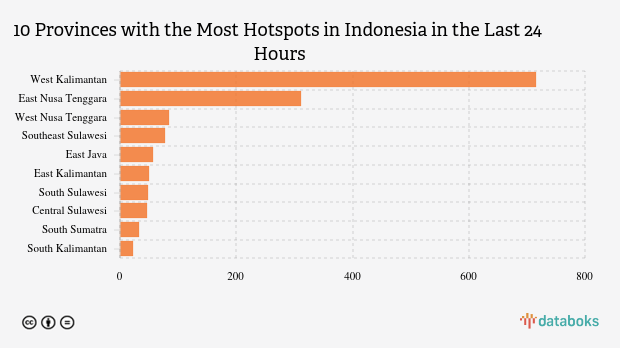 The most detected hotspots were in West Kalimantan, with 716 points. East Nusa Tenggara ranked second with 311 hotspots. West Nusa Tenggara was in third position with 85 hotspots.