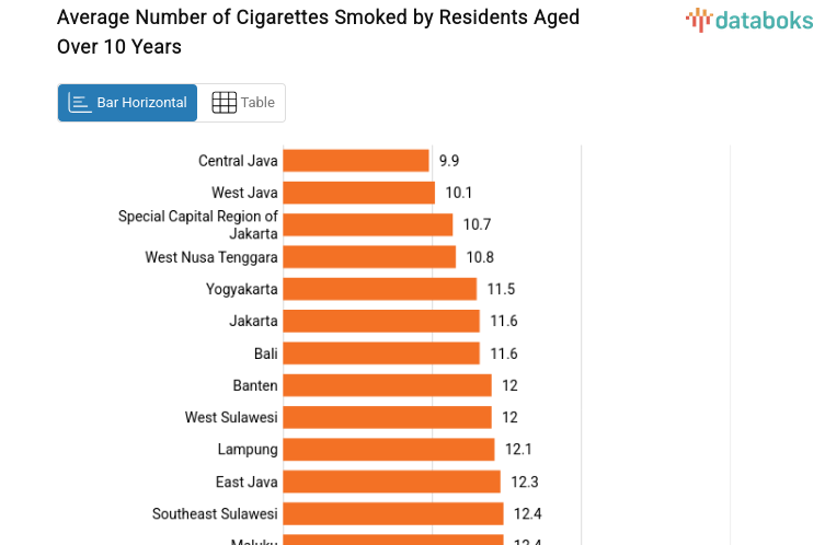 The highest average consumption was found in Bangka Belitung (18 sticks) and Riau (16-17 sticks).