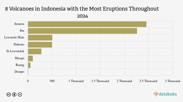 Throughout 2025, MAGMA Indonesia has recorded 6,137 volcanic eruptions across Indonesia. Mount Semeru in East Java had the most eruptions (2,457 times), while Mount Ibu erupted 2,259 times.
