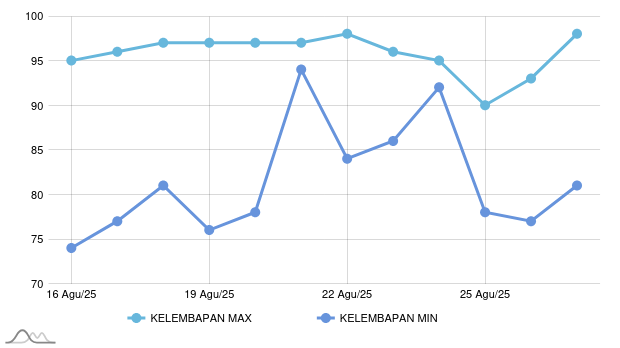 The Meteorology, Climatology, and Geophysics Agency (BMKG) reports moderate rain in Biak Numfor today. Over the next week, there is a chance of one thunderstorm, predicted for Wednesday, April 30, 2025. Other conditions include thunderstorms on Sunday, April 27, 2025, and light rain on Saturday, April 26, 2025.