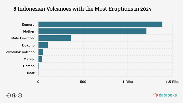During 2025, MAGMA Indonesia has recorded 3,160 volcanic eruptions/eruptions throughout Indonesia. Mount Semeru in East Java has experienced the most eruptions, with 1,385 eruptions.