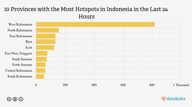 The most detected hotspots are in West Kalimantan with 817 points. North Kalimantan ranks second with 155 hotspots. East Kalimantan is in third place with 132 hotspots.
