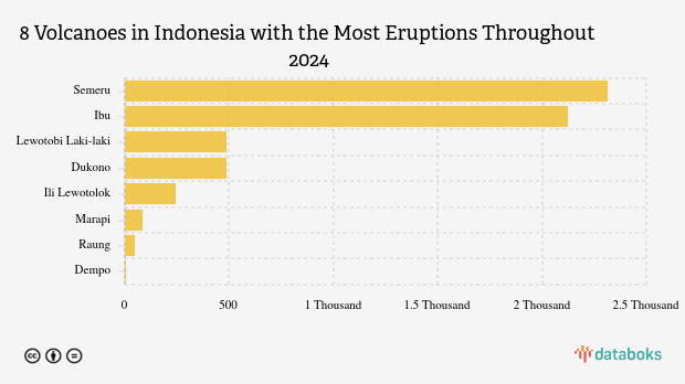 Throughout 2025, MAGMA Indonesia has recorded 5,793 volcanic eruptions across Indonesia. Mount Semeru in East Java had the most eruptions (2,313 times), while Mount Lewotobi Laki-laki erupted 486 times.