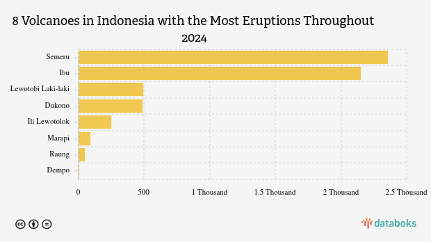 Throughout 2025, MAGMA Indonesia has recorded 5,883 volcanic eruptions across Indonesia. Mount Semeru in East Java had the most eruptions with 2,356 occurrences.
