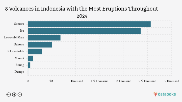 Throughout 2025, MAGMA Indonesia has recorded 6,537 volcanic eruptions across Indonesia. Mount Semeru in East Java had the most eruptions, with 2,557 events.