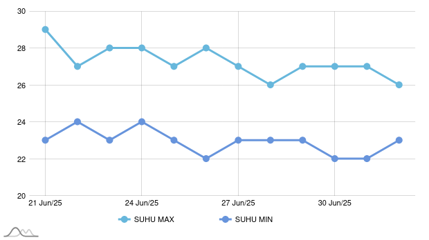 In Jayapura City, the highest temperature will be 30°C on Friday, April 11, 2025, and the lowest will be 23°C on Sunday, April 20, 2025. High humidity will make the temperature feel even hotter. Here's a detailed daily weather forecast for Jayapura City for the next week: