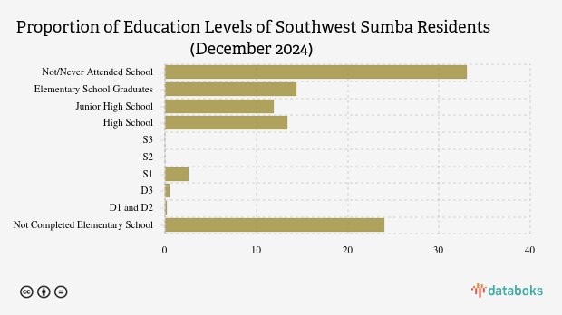Meanwhile, 23.99% of the population of Southwest Sumba Regency had not completed elementary school. As for residents who were not/had not attended school, they amounted to 33.07%.