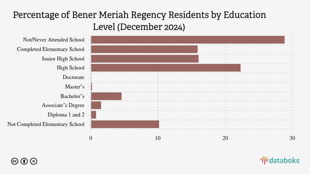 Meanwhile, 10.16% of the Bener Meriah Regency population had not completed Elementary School (SD). As for the population who had not/never attended school, it was 28.79%.