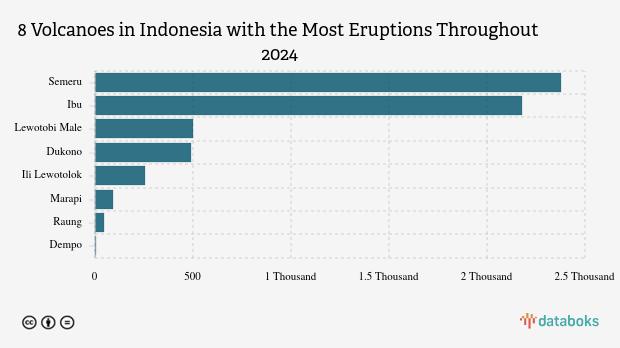 Throughout 2025, MAGMA Indonesia has recorded 5,943 volcanic eruptions across Indonesia. Mount Semeru in East Java had the most eruptions with 2,380 events.