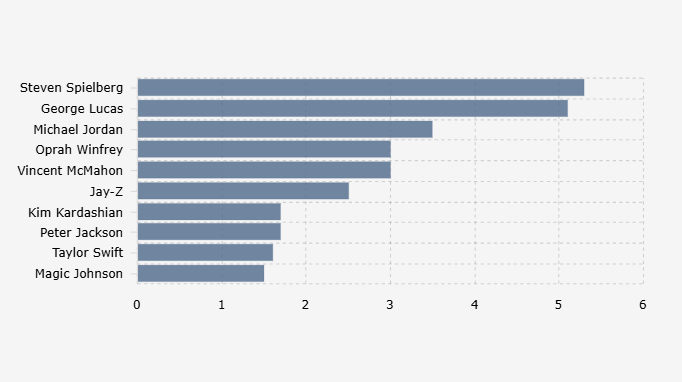 Steven Spielberg is listed as this year's richest celebrity, with an estimated fortune of US$5.3 billion.