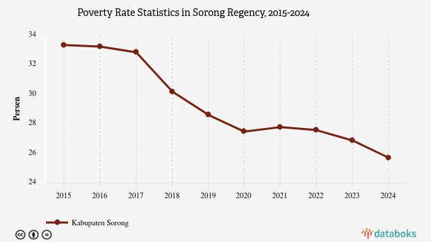 The trend in the poverty rate in Sorong Regency over the past 10 years has been downward, from an initial poverty rate of 33.35 percent to 25.71 percent.