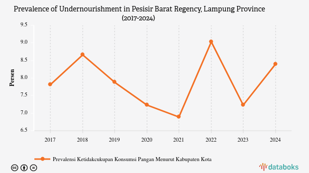 The Central Statistics Agency (BPS) reported that the prevalence of undernourishment (PoU) in Pesisir Barat Regency, Lampung, reached 8.4% in 2024.