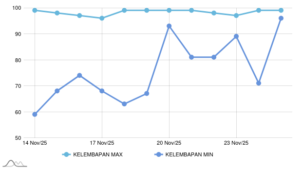 The Meteorology, Climatology, and Geophysics Agency (BMKG) reports light rain in Melawi today. Over the next week, there is a chance of thunderstorms once, on Monday, March 31, 2025. Other conditions include thunderstorms on Thursday, April 3, 2025, and cloudy skies on Monday, April 7, 2025.
