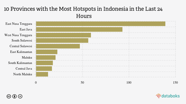 Most hotspots were detected in East Nusa Tenggara with 139 points. East Java ranked second with the highest number of hotspots at 93 points. West Nusa Tenggara was in third place with 59 hotspots.