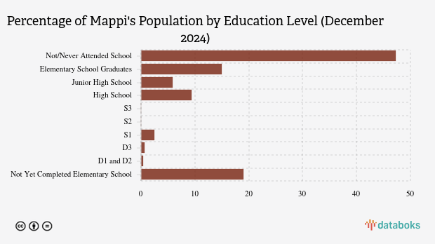 Meanwhile, 19.06% of Mappi Regency's population had not completed elementary school. As for the population who did not/had not attended school, it was 47.31%.