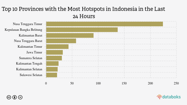 The most detected hotspots were in East Nusa Tenggara with 224 points. Bangka Belitung Islands ranked second with 137 hotspots. West Kalimantan was in third place with 91 hotspots.