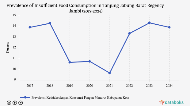 The Central Statistics Agency (BPS) reported that the prevalence of food inadequacy (Prevalence of Undernourishment/PoU) in Tanjung Jabung Barat Regency, Jambi reached 13.9% in 2024.