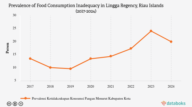 The Central Statistics Agency (BPS) reported that the prevalence of undernourishment (PoU) in Lingga Regency, Riau Islands, was 20.0% in 2024.