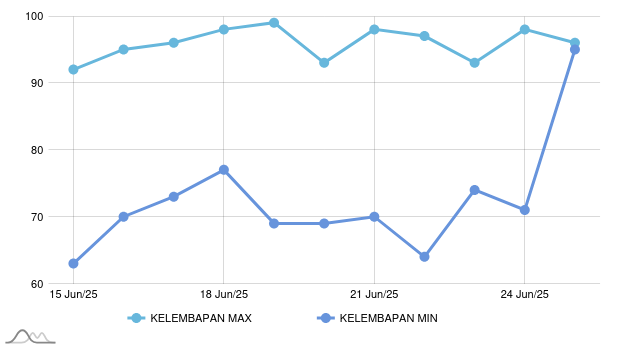 In Tangerang, the highest temperature will be 31°C on Tuesday, April 22, 2025, and the lowest will be 24°C on Thursday, April 17, 2025. High humidity will exacerbate the feeling of heat. Here's a detailed daily weather forecast for Tangerang for the next week: