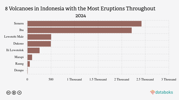 Throughout 2025, MAGMA Indonesia has recorded 6,028 volcanic eruptions across Indonesia. Mount Semeru in East Java has erupted the most, with 2,417 eruptions.