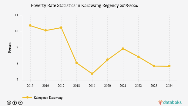 The trend of the poverty rate in Karawang Regency over the past 10 years has been decreasing, from an initial poverty rate of 10.37 percent to 7.86 percent.